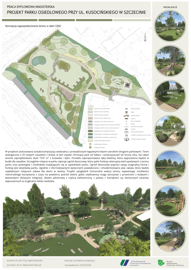 Po prezentacji projektu muszę przyznać, że byłem pod ogromnym wrażeniem. Powstała odważna, nieszablonowa i przede wszystkim nowoczesna wizja – zawierająca m.in. małą retencję, plac zabaw, siłownię plenerową oraz strefy relaksu nawiązujące do kultowych szczecińskich bulwarów. Co ważne – nie tylko ja byłem pod wrażeniem. Praca magisterska została bardzo wysoko oceniona, a prodziekan zaoferowała wszelkie możliwe wsparcie w kolejnych etapach realizacji projektu. Projekt został również pozytywnie odebrany przez prezes STBS Grażynę Szotkowską oraz zastępcę prezydenta miasta ds. inwestycji i zarządzania projektami Michała Przepierę.